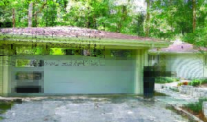 To enclose the carport area more, the homeowner had added semi-open interior walls made of cedar horizontal boards for a shuttered look. DH Pace built out the front part of the carport and installed the custom garage door.