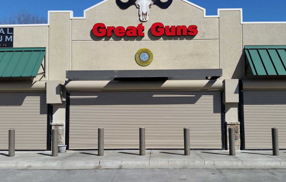 The owners of a local sporting goods, guns and ammunition store were concerned about their business’s security because there had been a rash of attempted burglaries and break-ins in the area. Their existing alarms and cameras were operational, but they were concerned that sooner or later the thieves would make an attempt on their store. Their primary goal was to deter attempted burglars until police arrived. The police had informed them that thieves were breaking into the businesses by ramming the front of a store with a stolen vehicle and then hooking a chain to the storefront security bars and pulling the storefront system out of the opening. While the owners already had security bars and bollard posts in front of the building, they wanted to increase store security further.